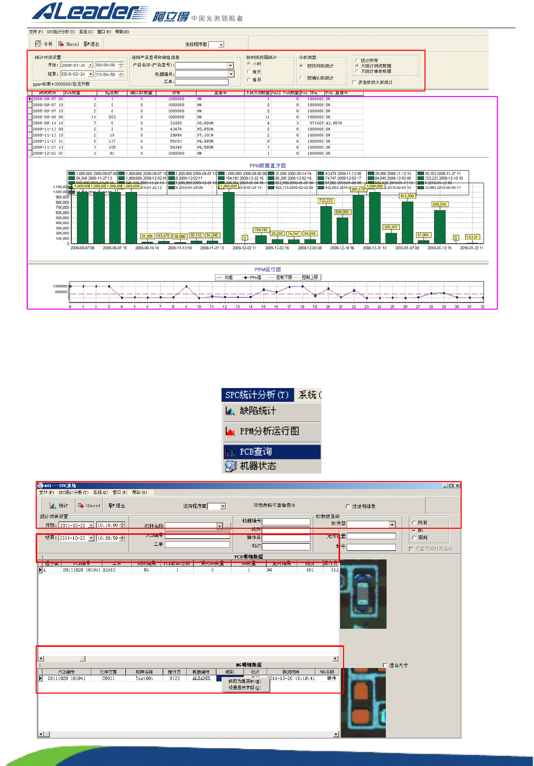 选择菜单 “ SPC 统计分析 ” 栏下的 “ PCB 查询 ” ,打开 “ 统计报表界面 ” 。