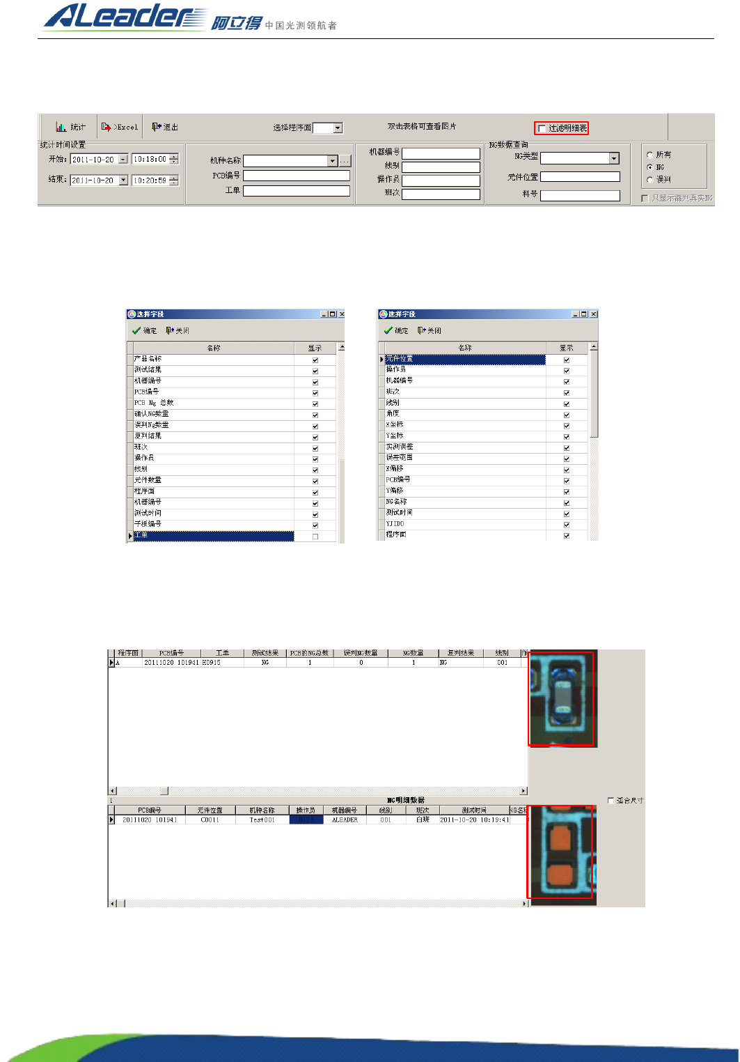 可以选择 PCB 明细数据, NG 明细数据和 ALL 。