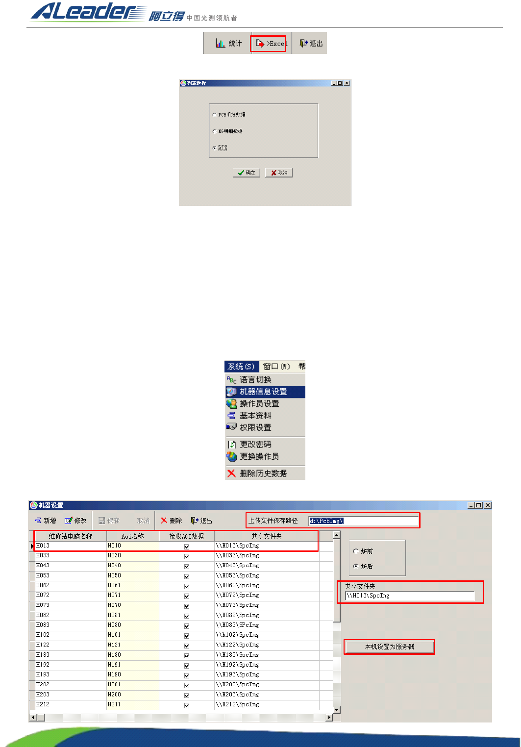 当需要在一台电脑查看所有线别的 NG 数据和检查机器运行情况时 , 可以将该主机设置为中心服务器 。