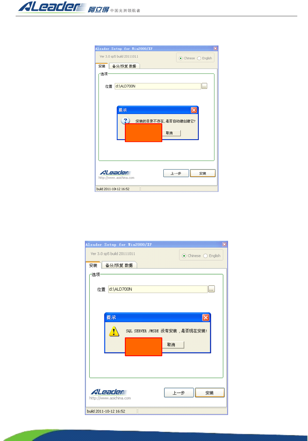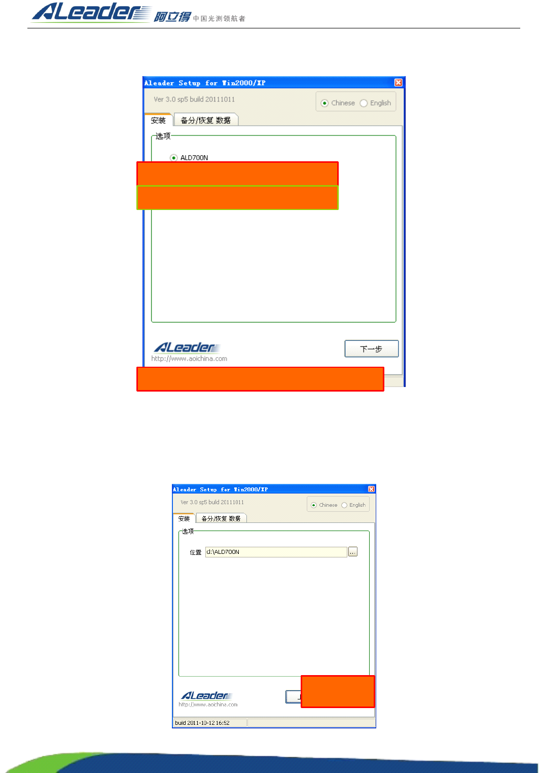选择 ALD700 进行软件安装(硬件方面当前两种机型为 500W 相机配置 ) ,选择下一步。