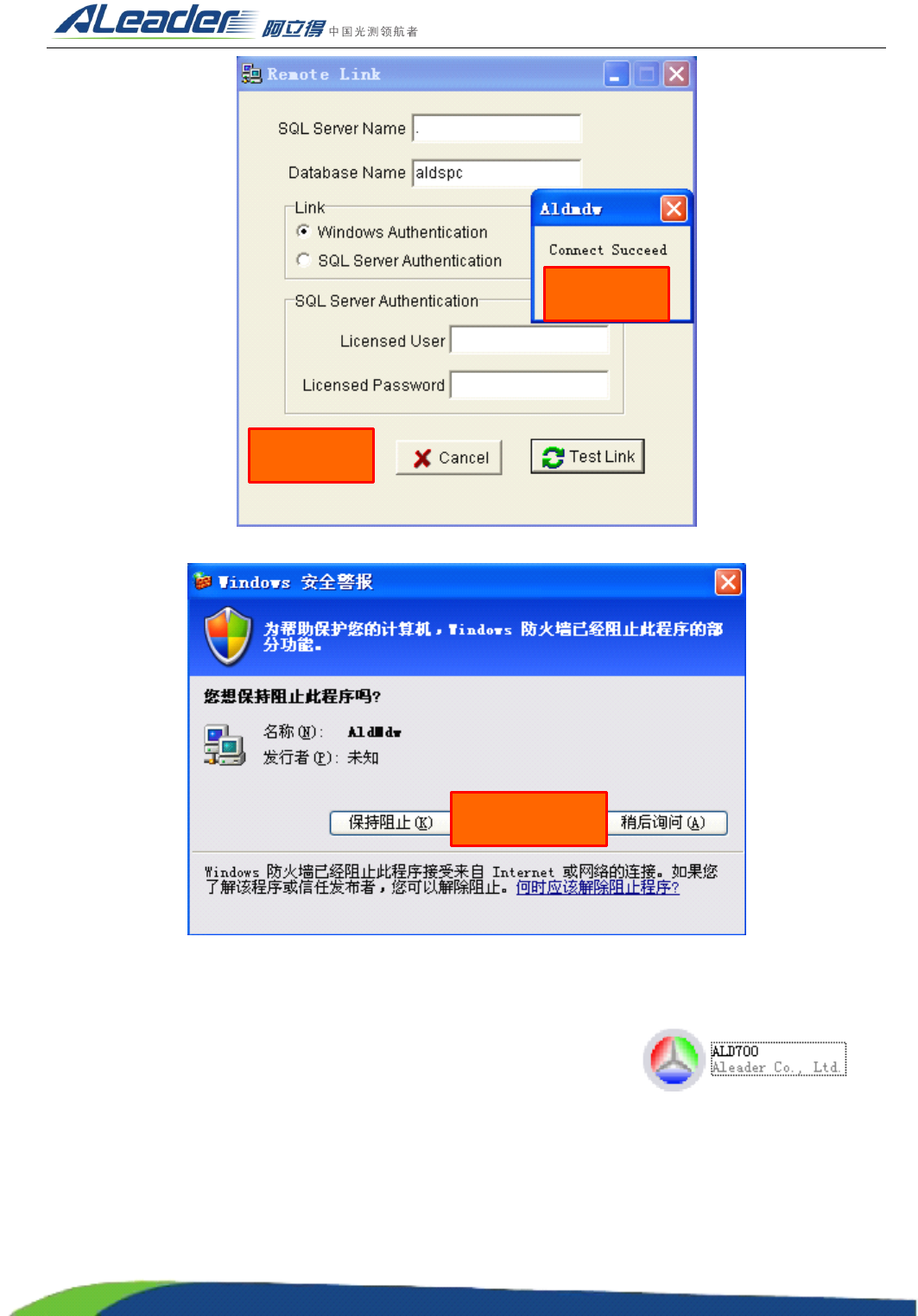 地址: 东莞市东城区牛山金鸡岭兴华工业园 F 栋 电话: +86-0769-22629057 传真: +86-0769-22629107 Http:www .aoichina.com TEL:4001 -189-123 F A X:0769-231020 60 Page: 203 点击 OK 后,防火墙会弹 出安全报警窗口, 选择解除阻 止。 就此, ALD700 软件已经安装到 机器上: 接下来需要 设置相关的参数: 检查设 备急停状…