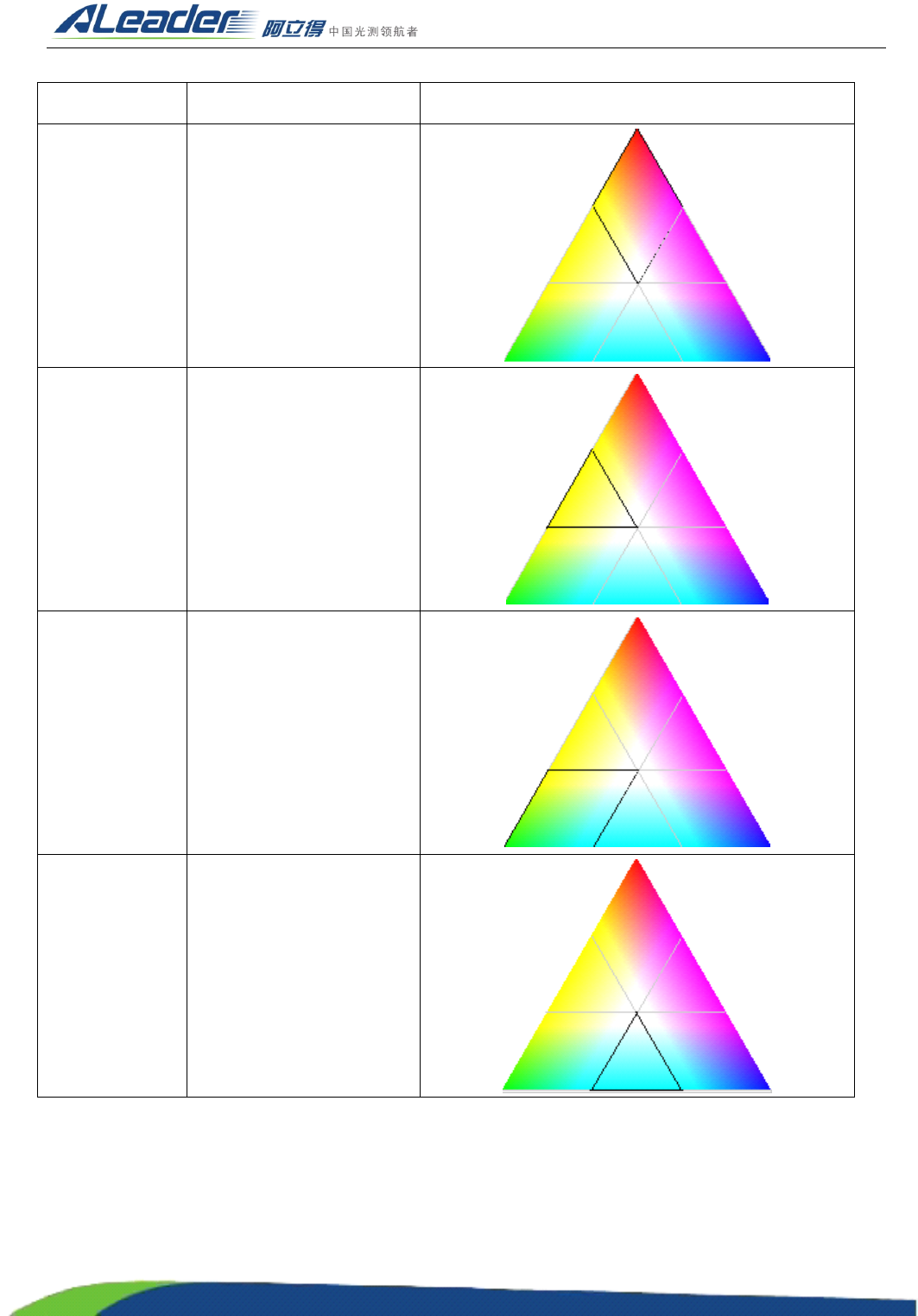 地址: 东莞市东城区牛山金鸡岭兴华工业园 F 栋 电话: +86-0769-22629057 传真: +86-0769-22629107 Http:www .aoichina.com TEL:4001 -189-123 F A X:0769-231020 60 Page: 212 蓝、紫、白 ,其表示如下: 类型 参数 图形 红 红 : ( 60 , 180 ) 绿 : ( 0 , 60 ) 蓝 : ( 0 , 60 ) 黄 红 : (…