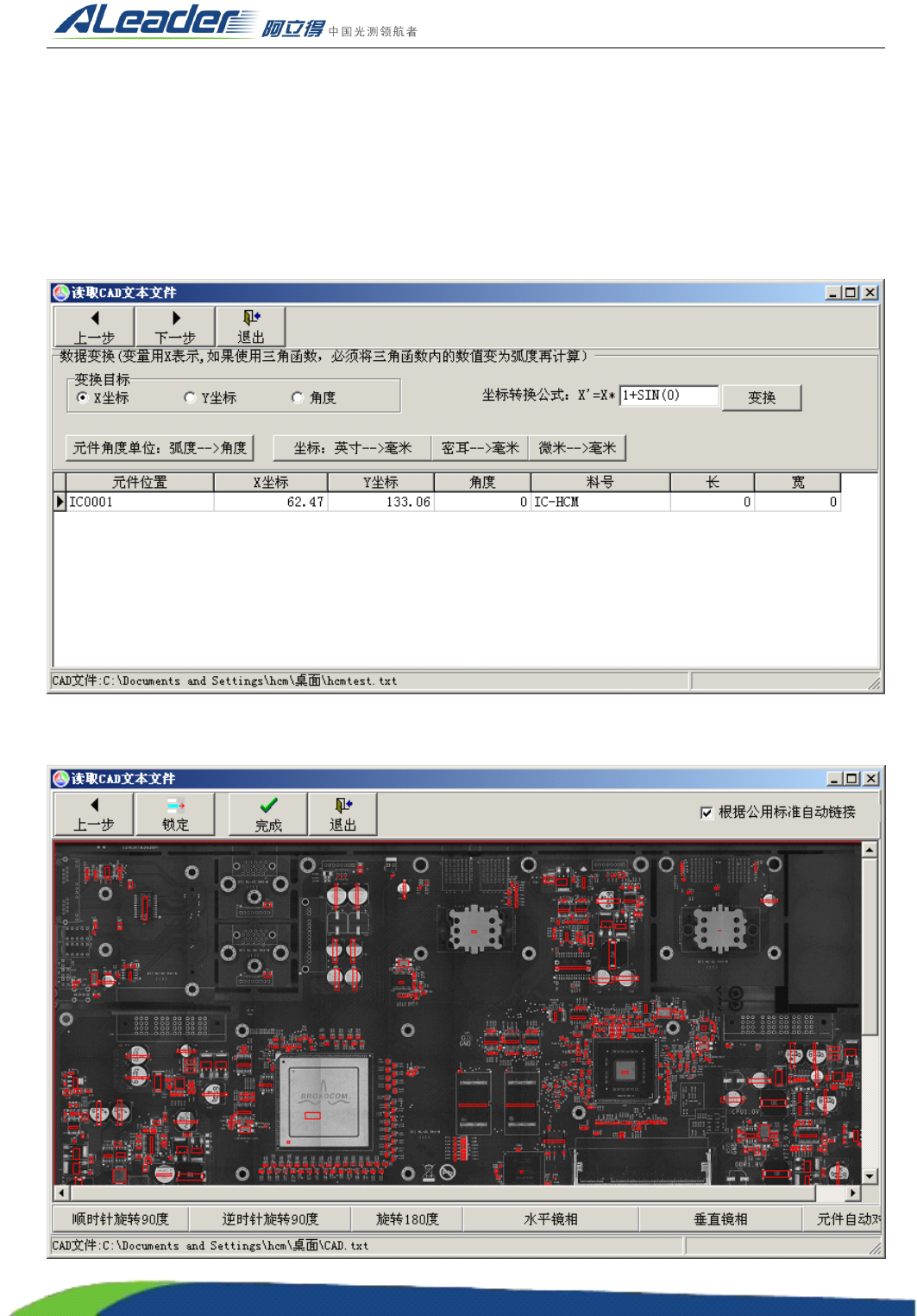 7 ) 完成:在元件镜像图像调节好后,把 CAD 数据加载到程序中。