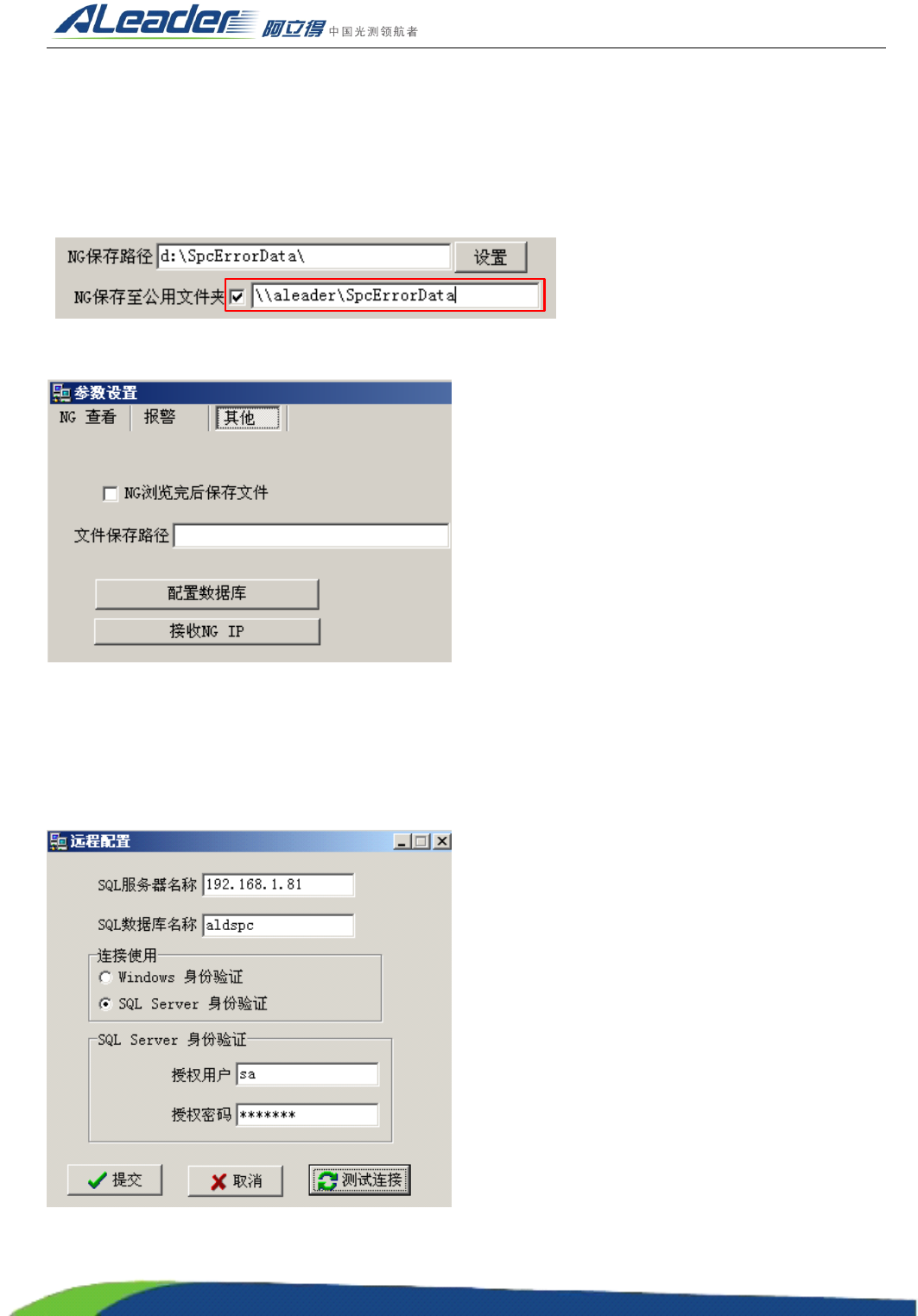 使用 SQL Server 身份验证,用户为 sa ,授权密码为 aleader ,