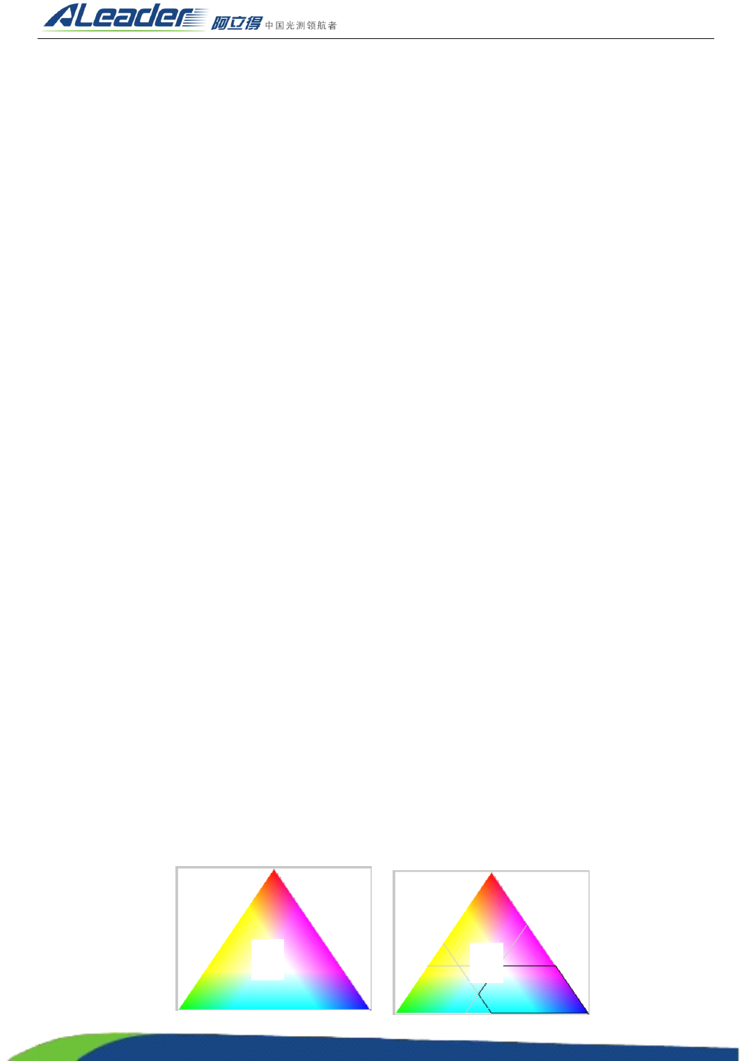 对不同的光源标准 。 ALeader 专用的光源为自上而下分别为 RRGB ( 红红绿蓝 ) 的环塔状光源 , 其光源参数