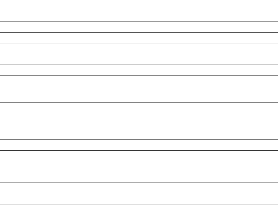 the following table for details.