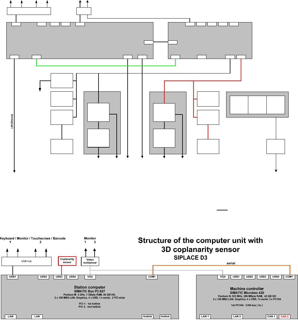 Fig. 4-3: Hardware components of the computer system for the SIPLACE D3 with 3D coplanarity sensor - schematic block diagram