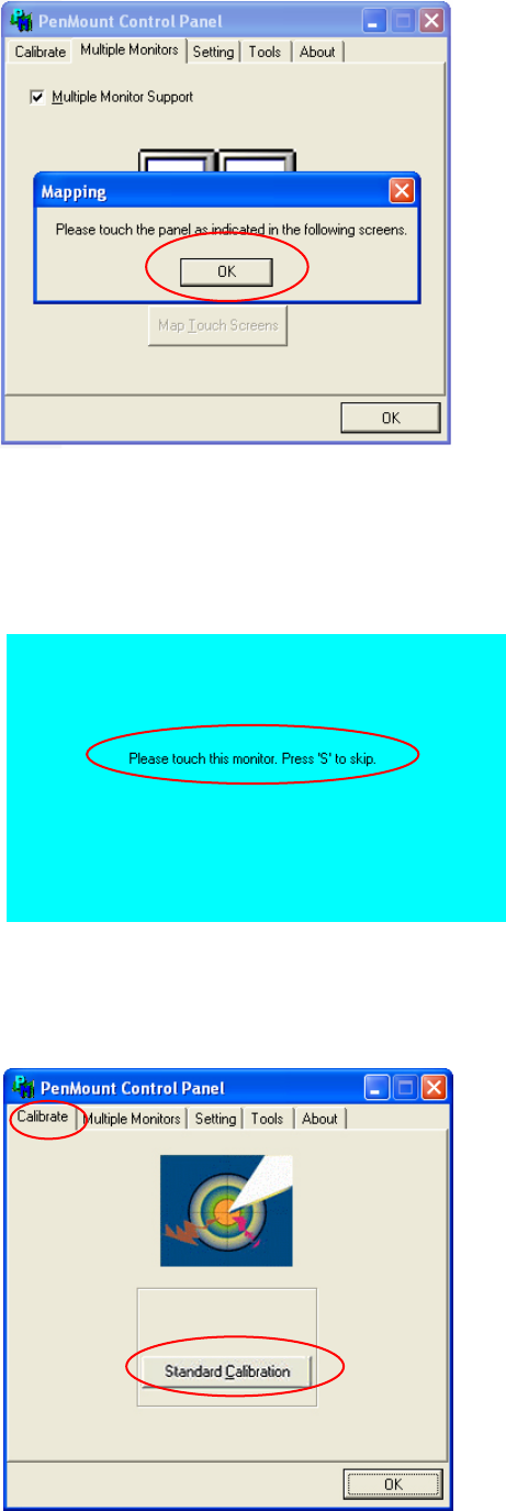 → Tippen Sie jeweils mit dem Finger den Monitor an, an dem Please touch this monitor angezeigt