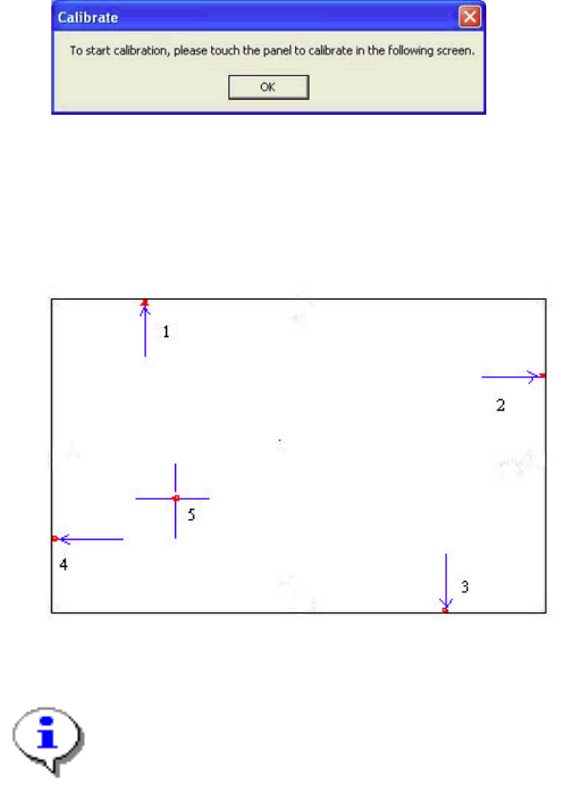 → Tippen Sie mit dem Stift die roten Kalibriermarkierungen in ihrer nummerierten Reihenfolge an.