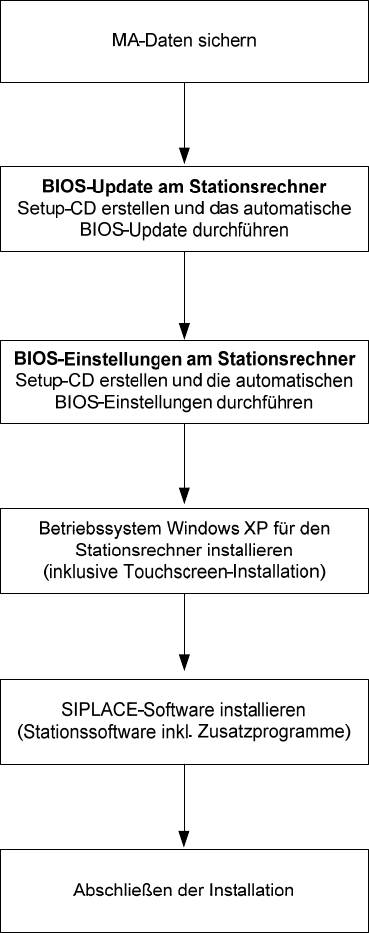 Installationsanleitung Stationssoftw are Version 604.01 SP1 Ausgabe 12/2007 5.2 Automatisches BIOS-Up date am S t ationsrechner Hinw eis: Wenn die BIOS Version ≤ 1.50 ist, müssen Sie ein BIOS-Update durchführen. Für die …