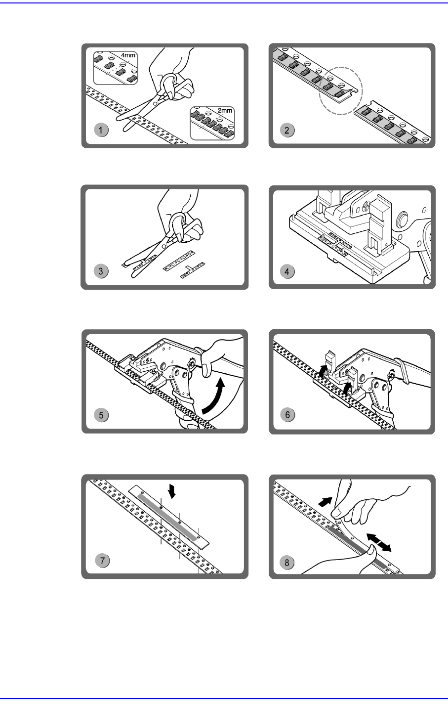 4-3 连接 4.1.3. 料带连接方法 (Emboss Type) 详细内容请参阅所购入的接合工 具组的手册。 请用剪切使用中带的末端和连接 的带 的开头部分。 揭开连接的带塑料的初段要长 一些。 H 型 Ti p 剪成 I 型。 把使 Burr 朝上, 把 把切断的 Ti p 夹在 To o l 。 操作 T ool 把手连接带。 举起向下装置, 按住 T ool 把手拉开后 从 T ool 揭开带。 对准连接 T ape 的孔, …