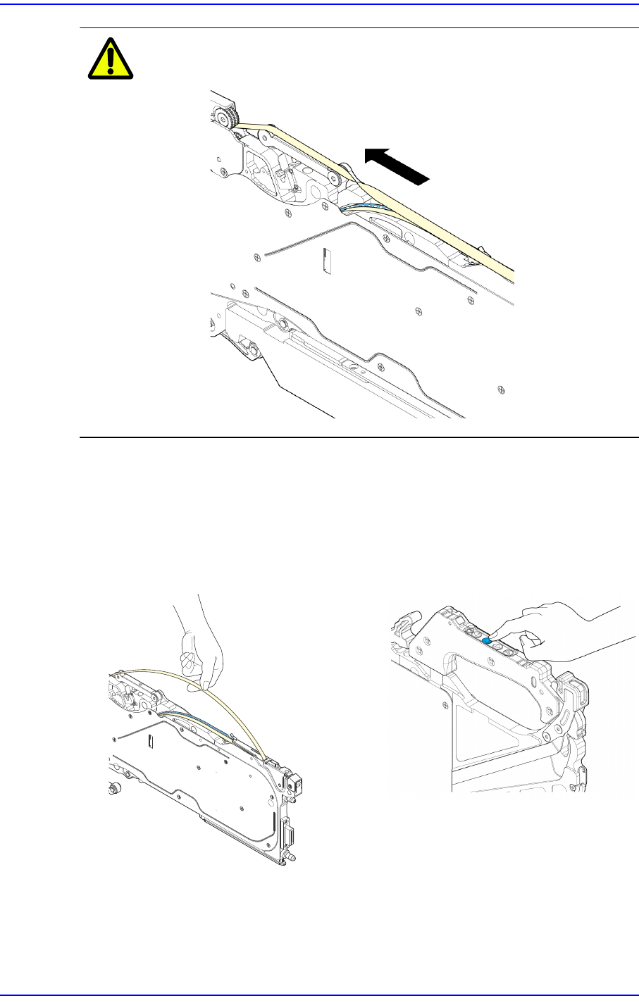 4) 按压前进按钮直到上封带从前方塑料间隙出来为止。