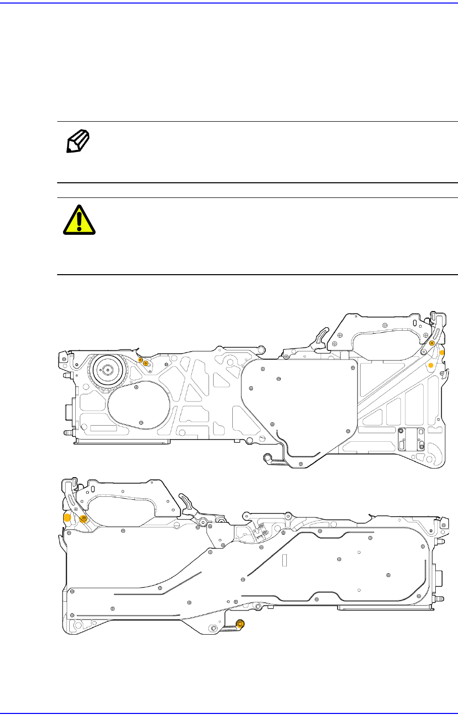 3-7 维修与维护 3.3. 摩擦部位的润滑 3.3.1. 各种接头 (Joint) 及摩擦部位 下图是安装或使用供料器时会因 为动作而发生摩擦的部位。 如果在所示部位发 生噪 音或感觉摩擦较大, 请涂敷少量滑脂。 如果是料带导件 部位与 Drain Gear 部位的动 作所造成的摩擦或噪音, 请联系本公司的 C/S 。 便笺 建议使用下列润滑用滑脂 : MICROLUBE GLY92 GREASE (MAKER : KLUBER) 注…