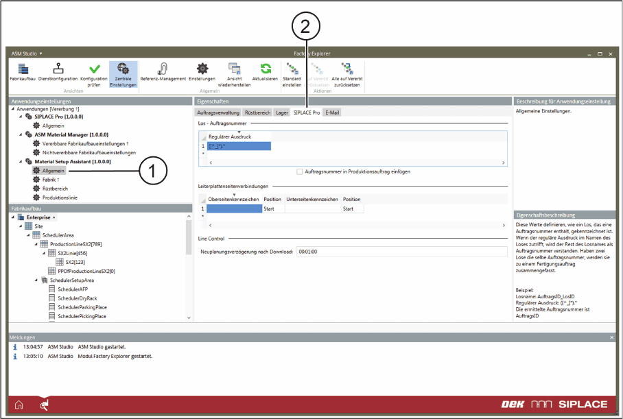 Anwendungseinstellungen – Allgemein: Registerkarte – SIPLACE Pro