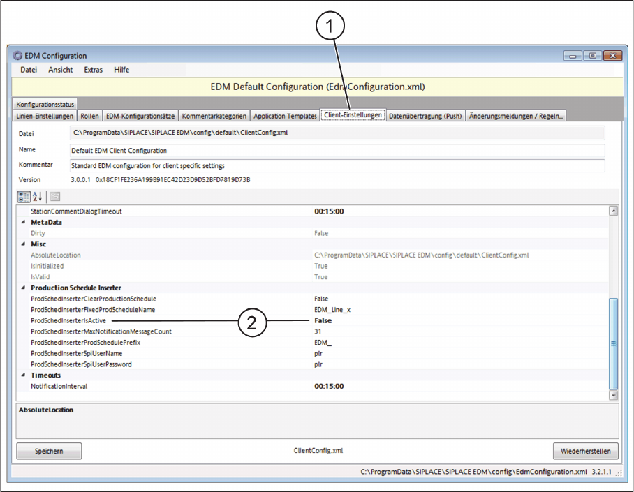 ► Setzen Sie den Eintrag ProdSchedInserterIsActive auf False.