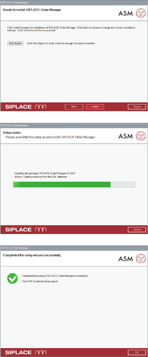 2.3.1 Successfully Installed SIPLACE Order Manager Client