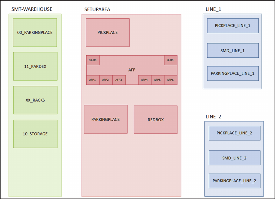 presetup areas which are assigned to the production lines.