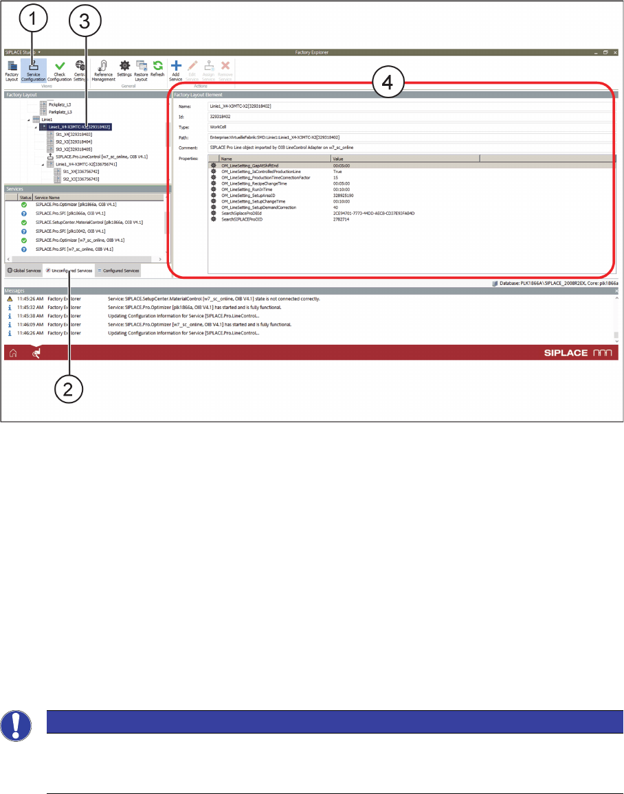 ► In the Unconfigured Services tab (2), find the service Siplace.Pro.LineControl.