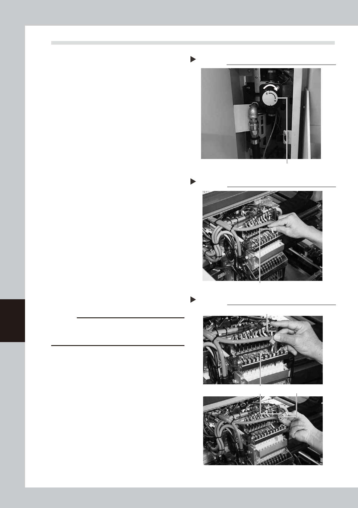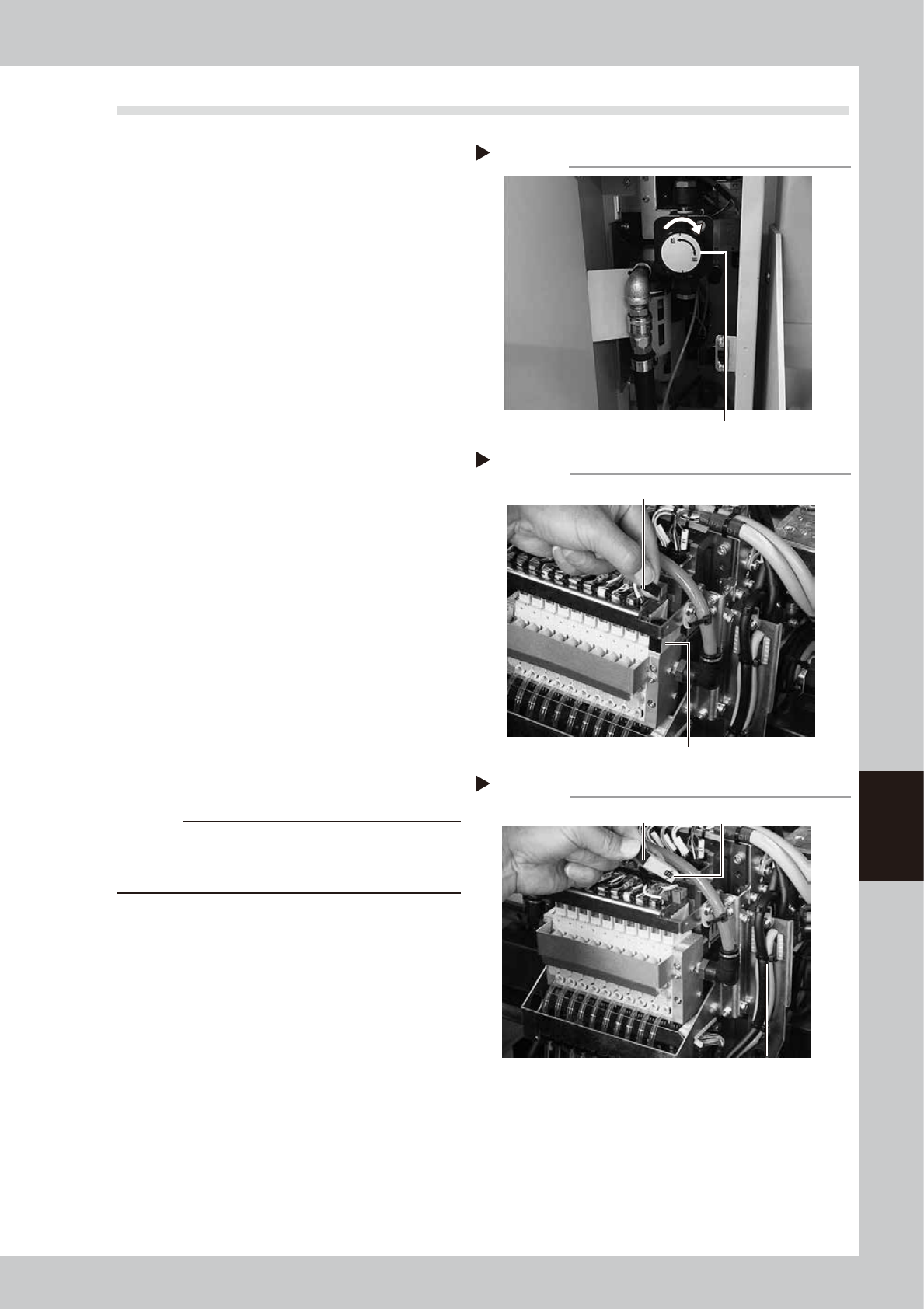 6-7 6 How to replace consumable parts 3.3 Replacing the cleaning blow valve 1 T urn OFF the air supply and power OFF the machine. 1. Quit the software and power OFF the machine. 2. Turn the air supply/exhaust switch insi…