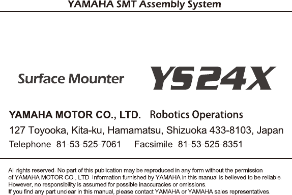 just a YAMAHA surface mounter (or related machine) and off-line PC nor can accept responsibility for problems