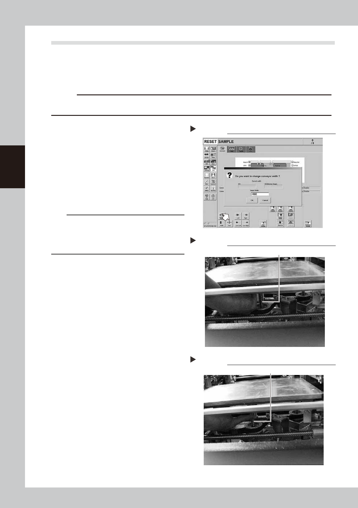 Conveyor Width Change screen.