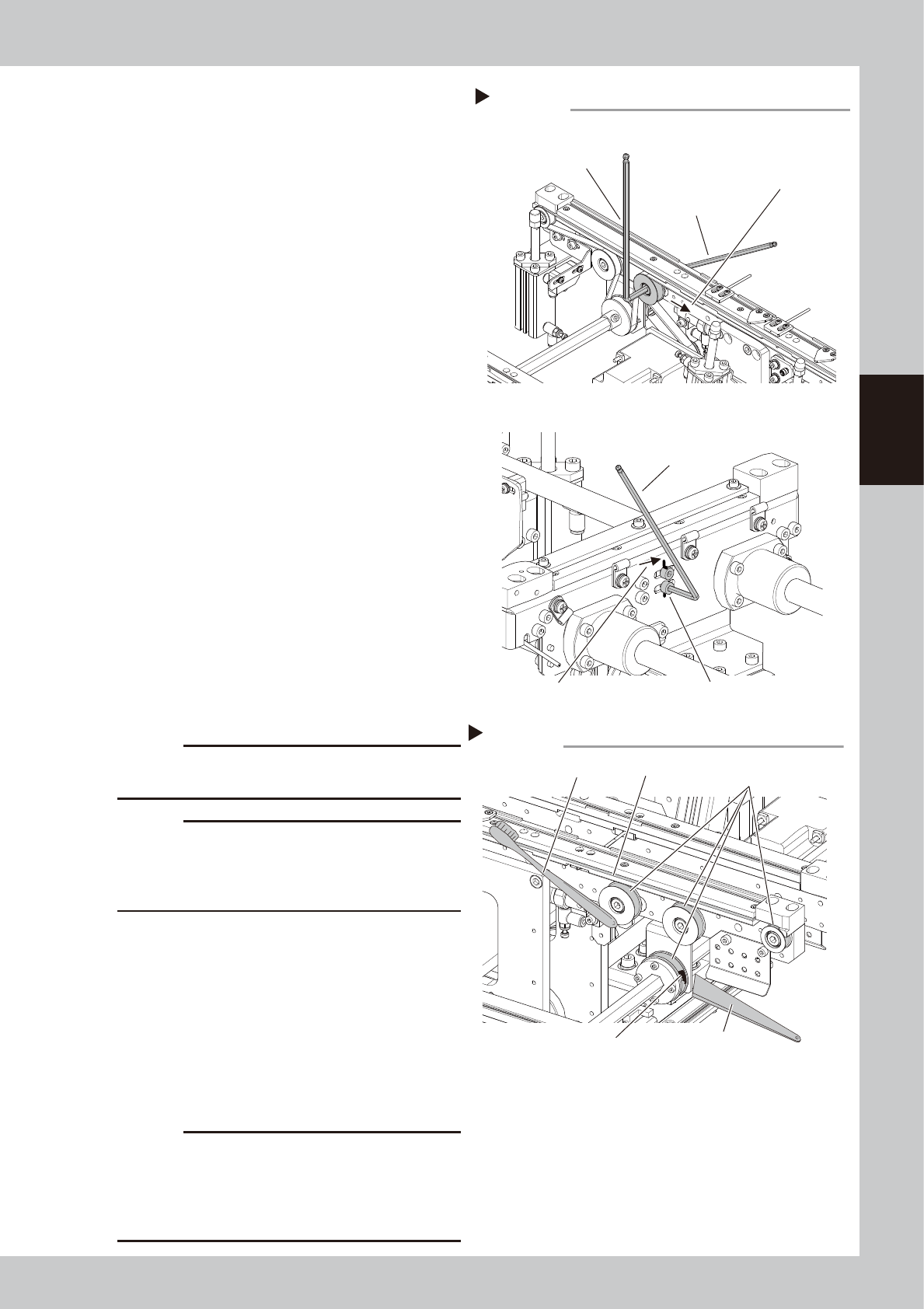 3-28 3 Periodic maintenance items Loosen the conveyor belt Example of Dual-lane ■ Lane 1 ■ Lane 2 Mark the position of the bolt fastening the pulley . Lane-1 conveyor Loosen this pulley . Direction to move the pulley . D…
