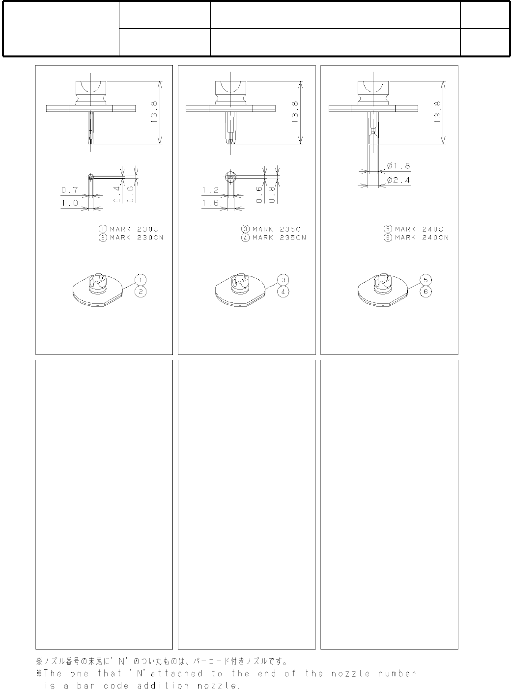 Ref No. Remark s R 1 Q'ty 2-B 8ノズルヘッド用ノズル For 8 nozzle head イラスト No. Part No. 品名 品番 数量 R 2 パーツリスト Kit No. キット 品 番 Kit Name キット名称 NOZZLE_NPM02 Part Name 備考 セクションNo. PARTS LIS T Section No. R 3 NOZZLE No.230C 1 1…