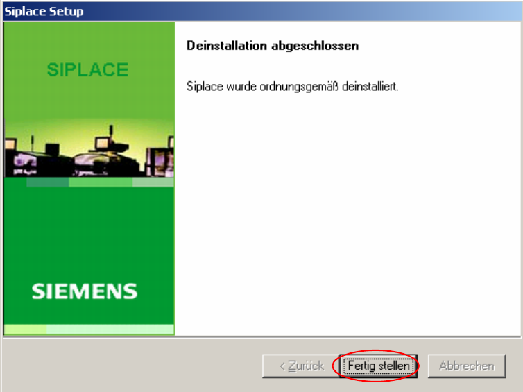 Die SIPLACE Software und SIPLACE Vision sind nun ordnungsgemäß deinstalliert.