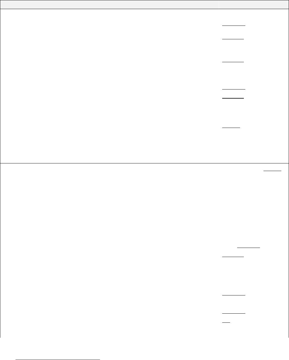 Menu item Comment Selection options
