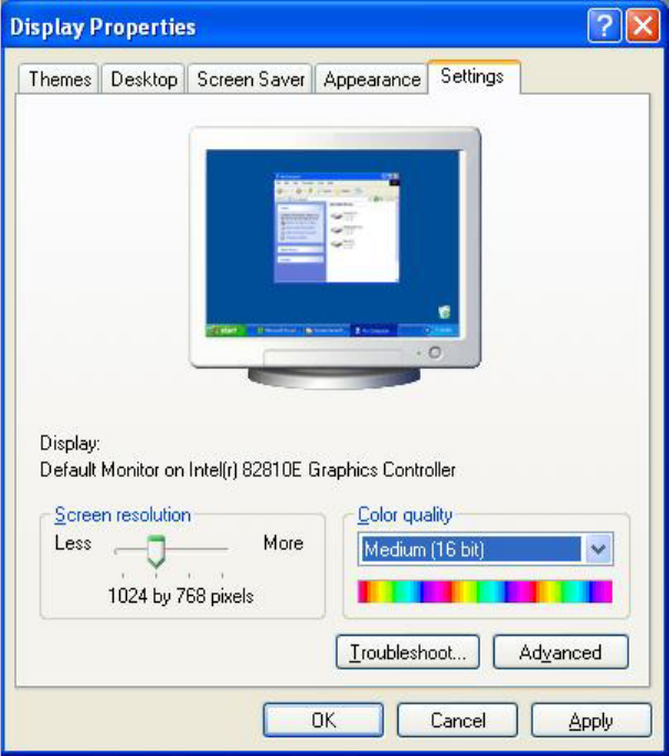 → Select Start Æ Settings Æ Control Panel Æ Display.