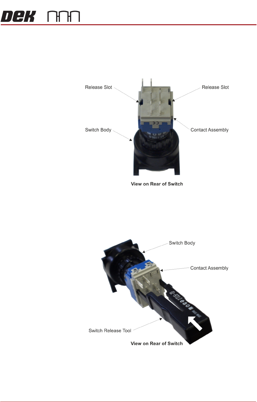 c. Leaving the switch release tool in position, pull the contact assembly from