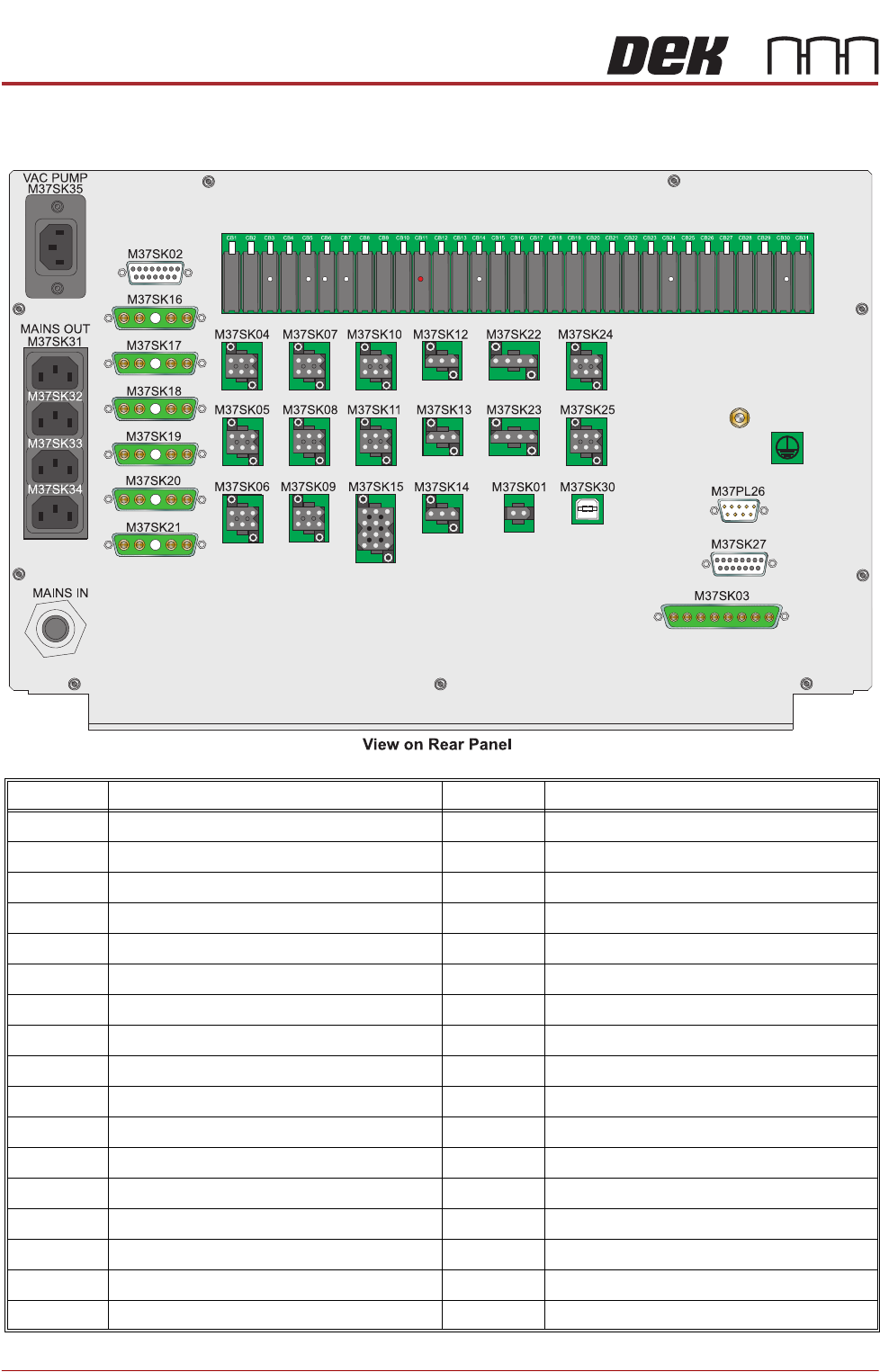 M37SK16 Rising Table Servo Motor Power M37SK35 Internal Vac Pump Supply