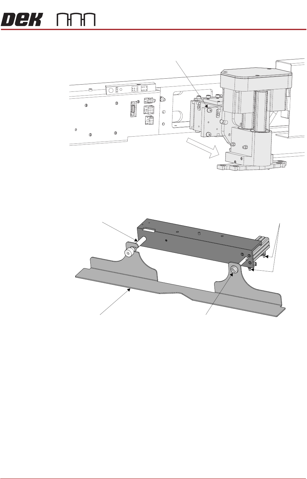 dowels locate into the print carriage locating holes. Secure the unit to the