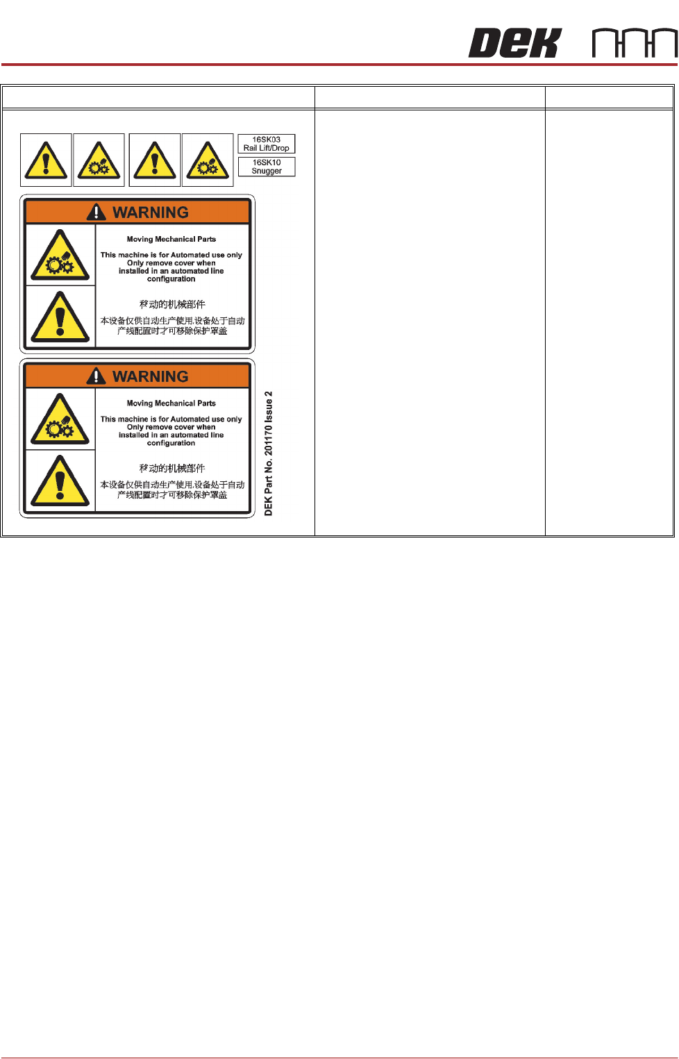SEMI Labelling The following table displays the SEMI labelling that may be applied to the
