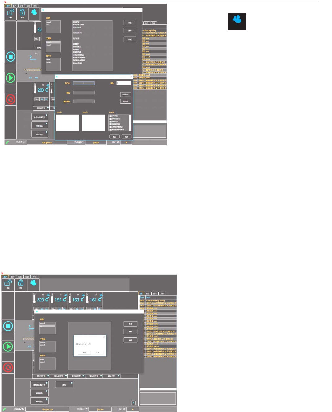 4.3.3.4 设置配方编辑、系统参数设置、定时器功能和保养参数设置。