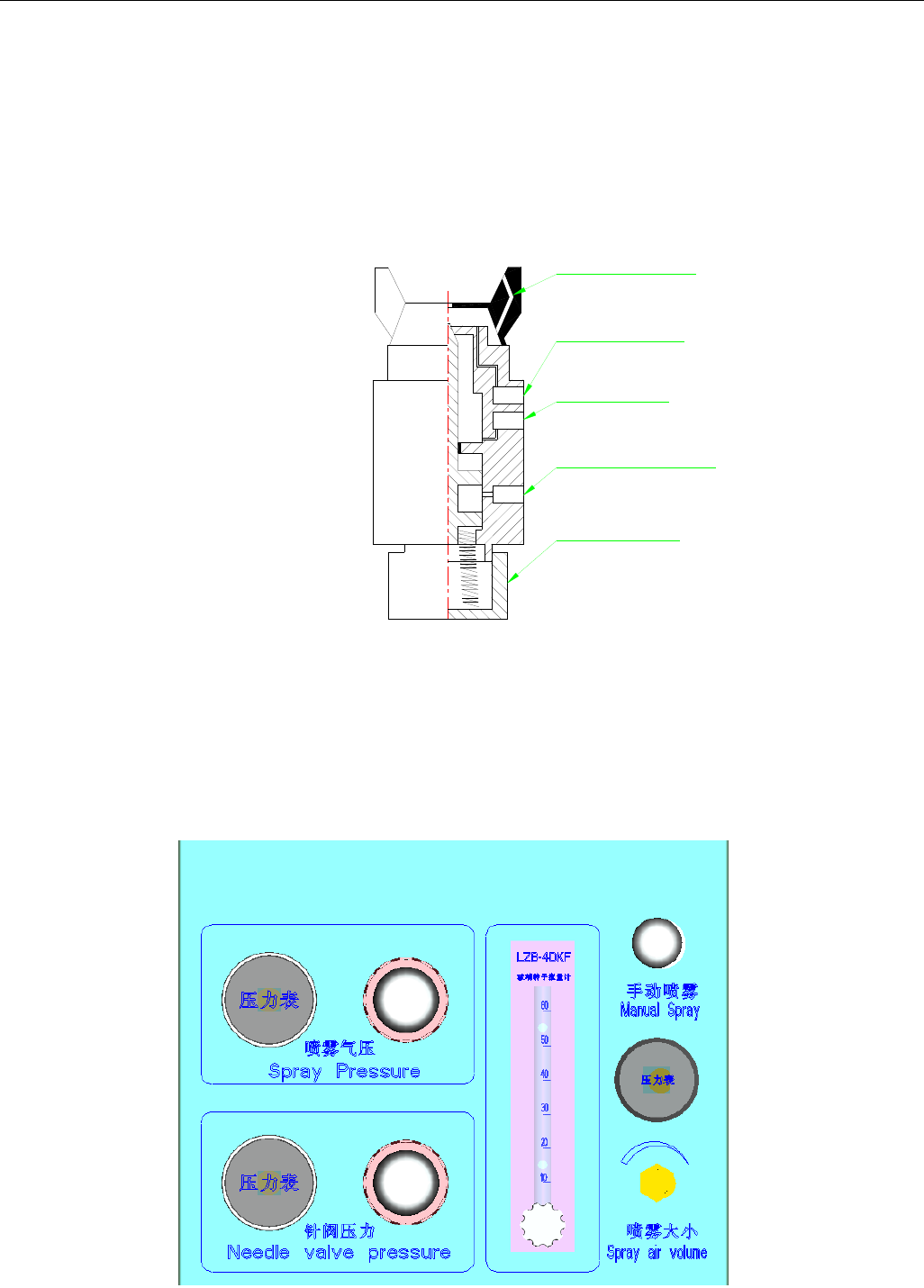2.“喷雾气压”调节旋钮控制喷射压力(一般压力值为 0.3Mpa 为宜);