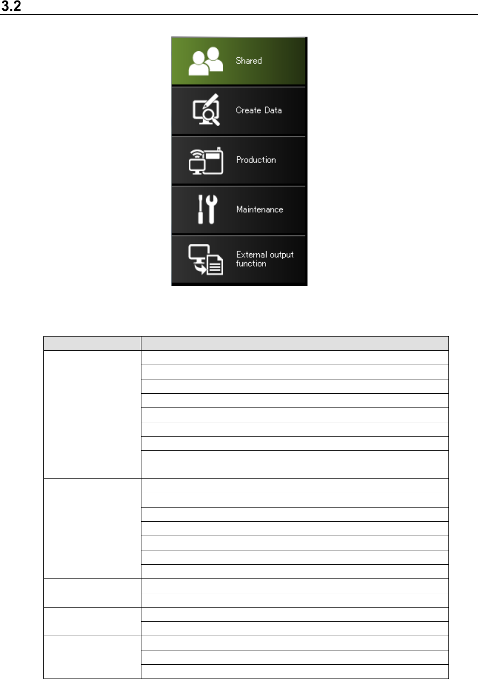 Table 3.2-1 Description of each tab item