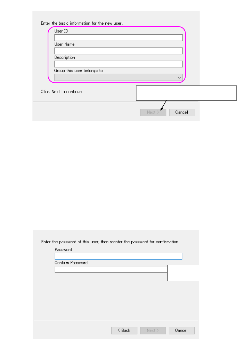 Figure 4.2-3 “Add User” dialog box – Password setting screen