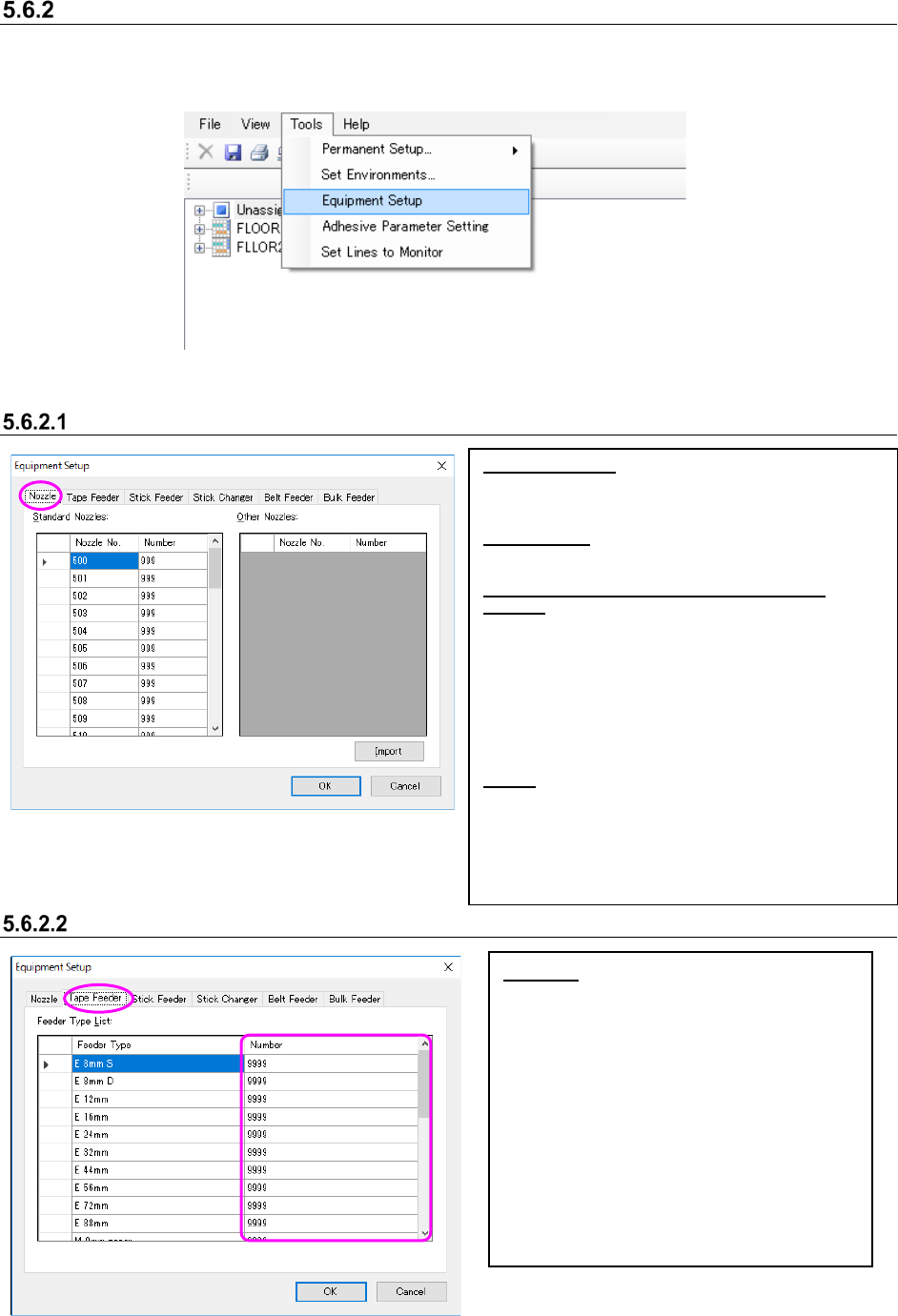Figure 5.6-10 “Equipment Setup” screen (Tape Feeder)