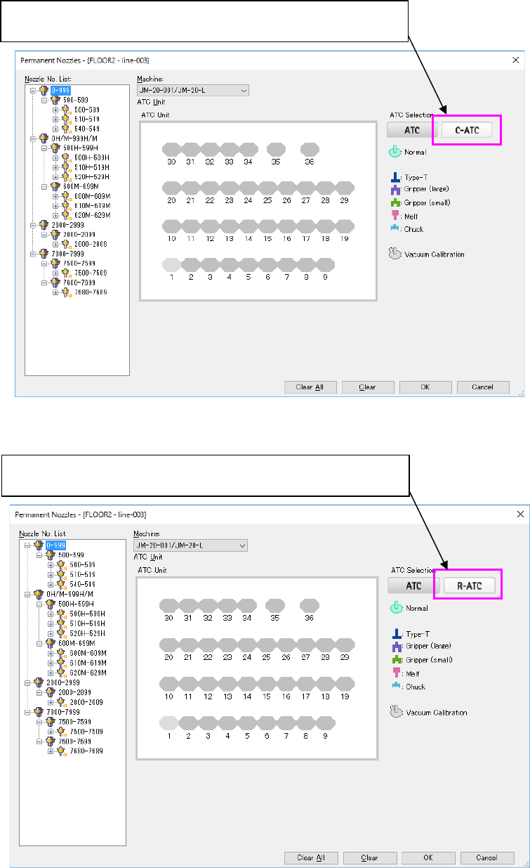 Select the nozzle number on the “Nozzle No. List,” and drag it to the image of the desired ATC