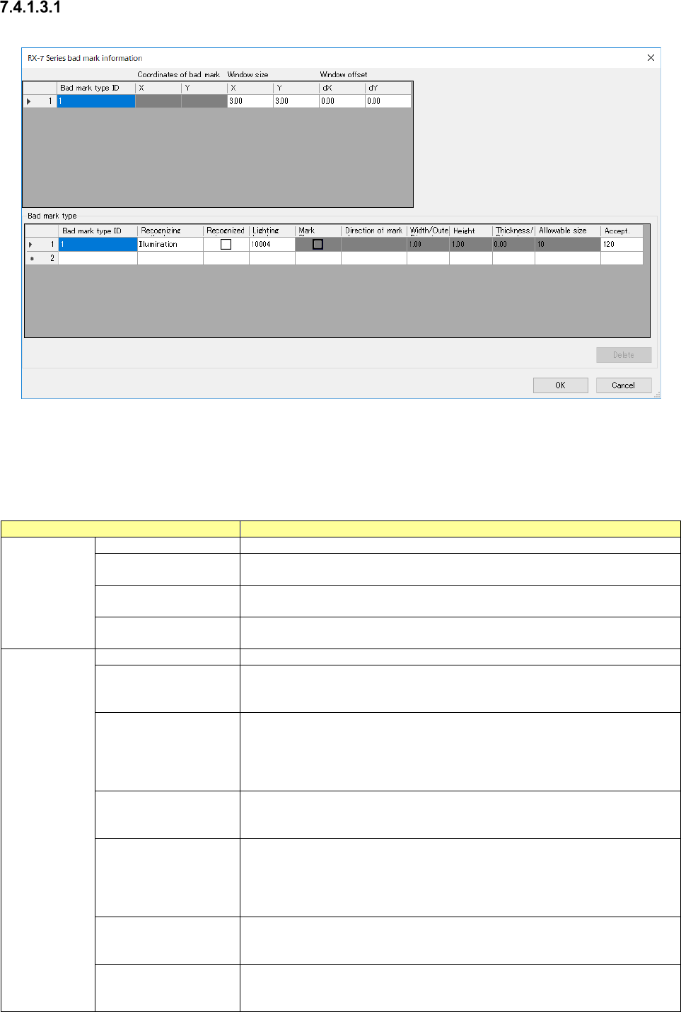 Table 7.4-5 Setting items to RX-7 series bad mark information