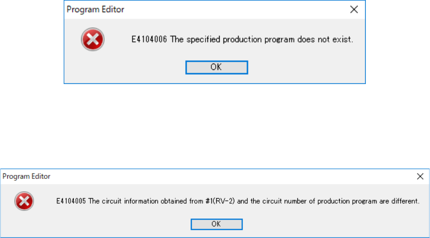 Figure 7.4-15 Error caused because the specified production program is not found