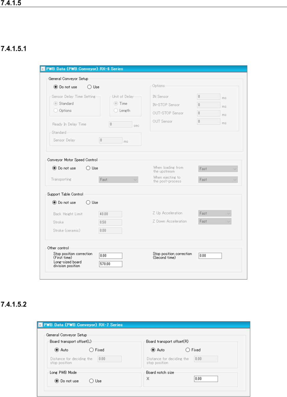 Figure 7.4-18 PWB data (transport setting) screen (RX-7 Series)