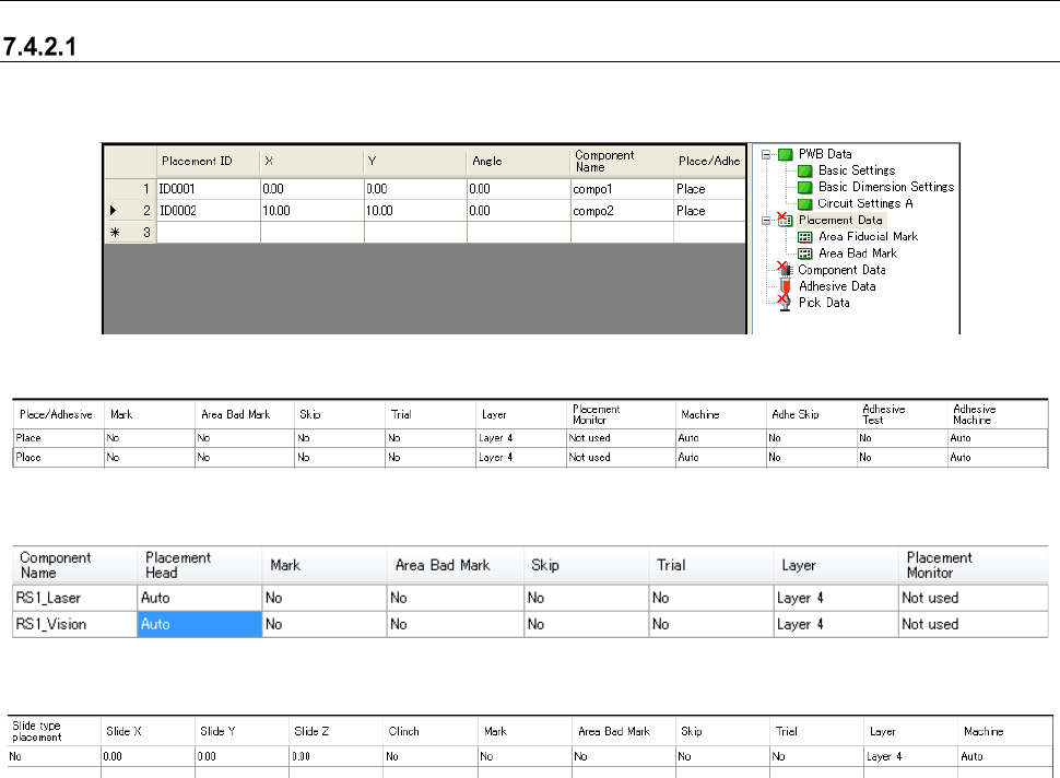 Figure 7.4-23 “Placement Data” screen 2 (In the line mode)