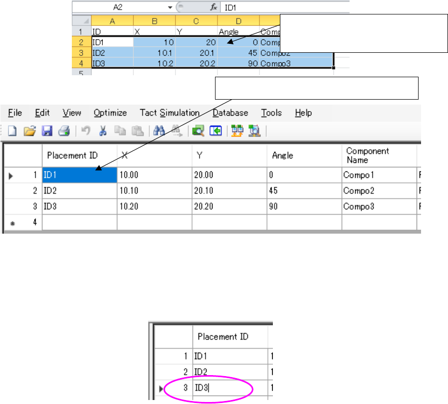 Moreover, when the cell of placement ID and component name has a cursor, the "copy" and “paste”