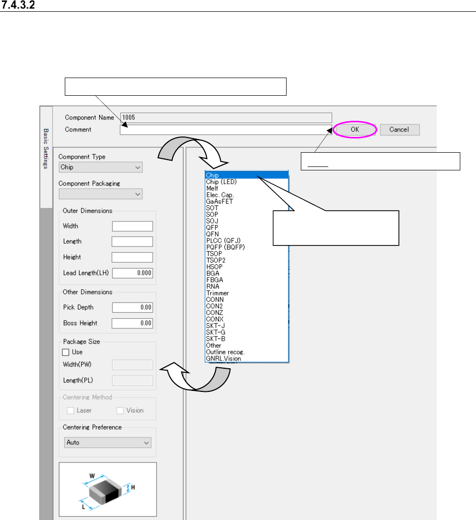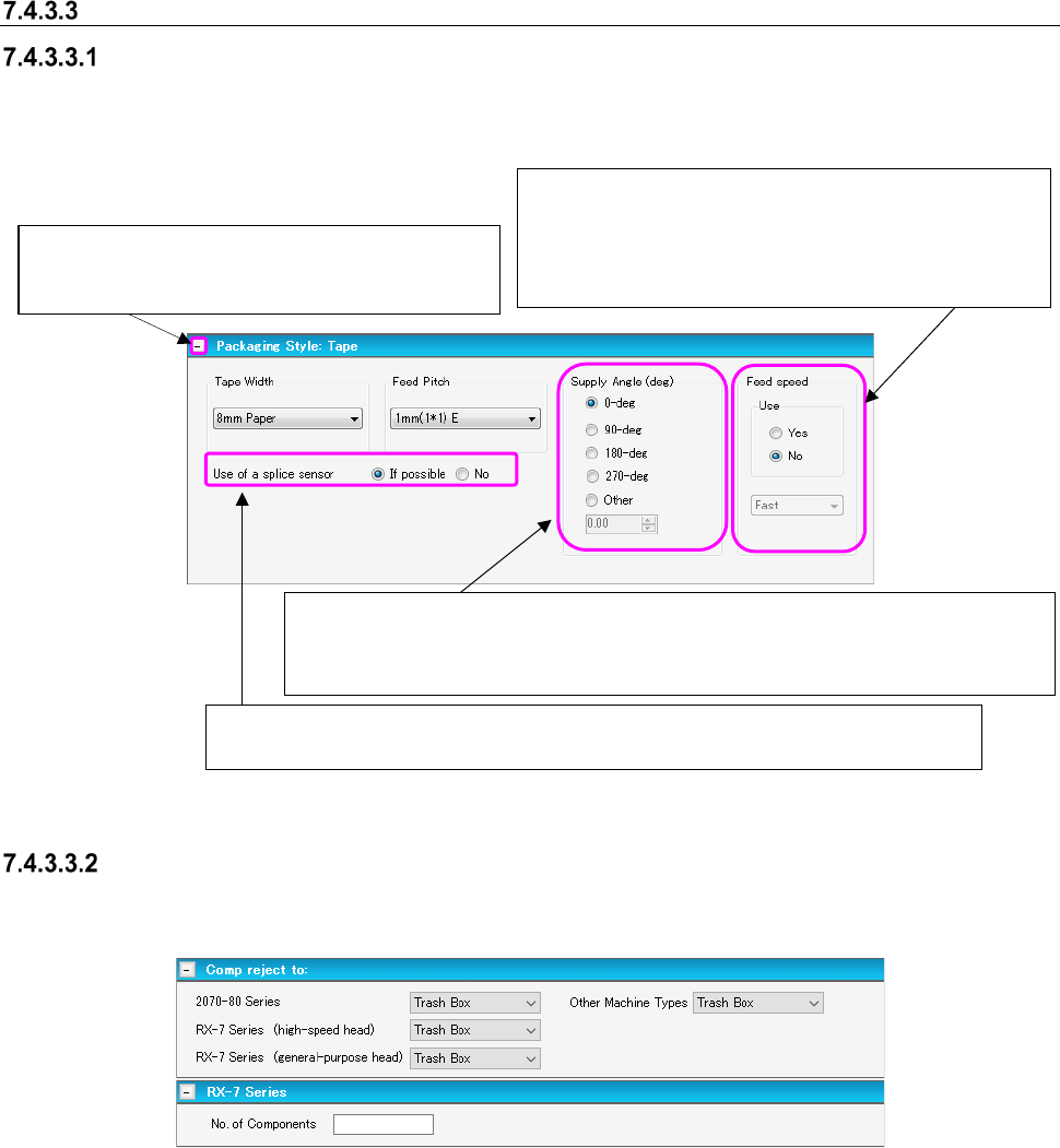 When you select “Ta pe” in the “Component Packaging” field on the “Basic Settings” screen, and