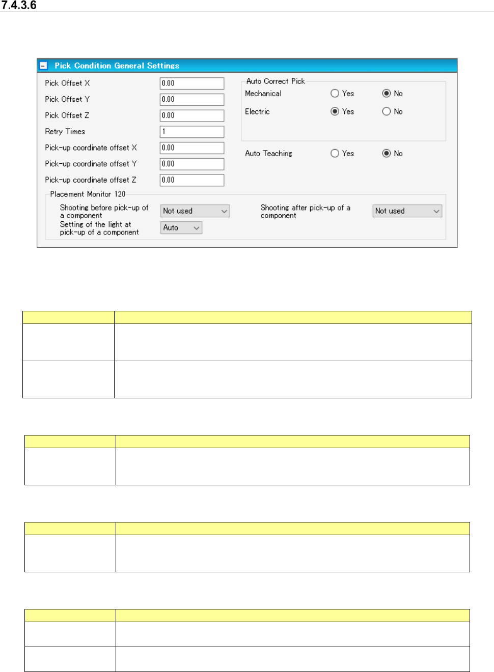 Pick offset: The pick conditions are set when components are not picked normally because there