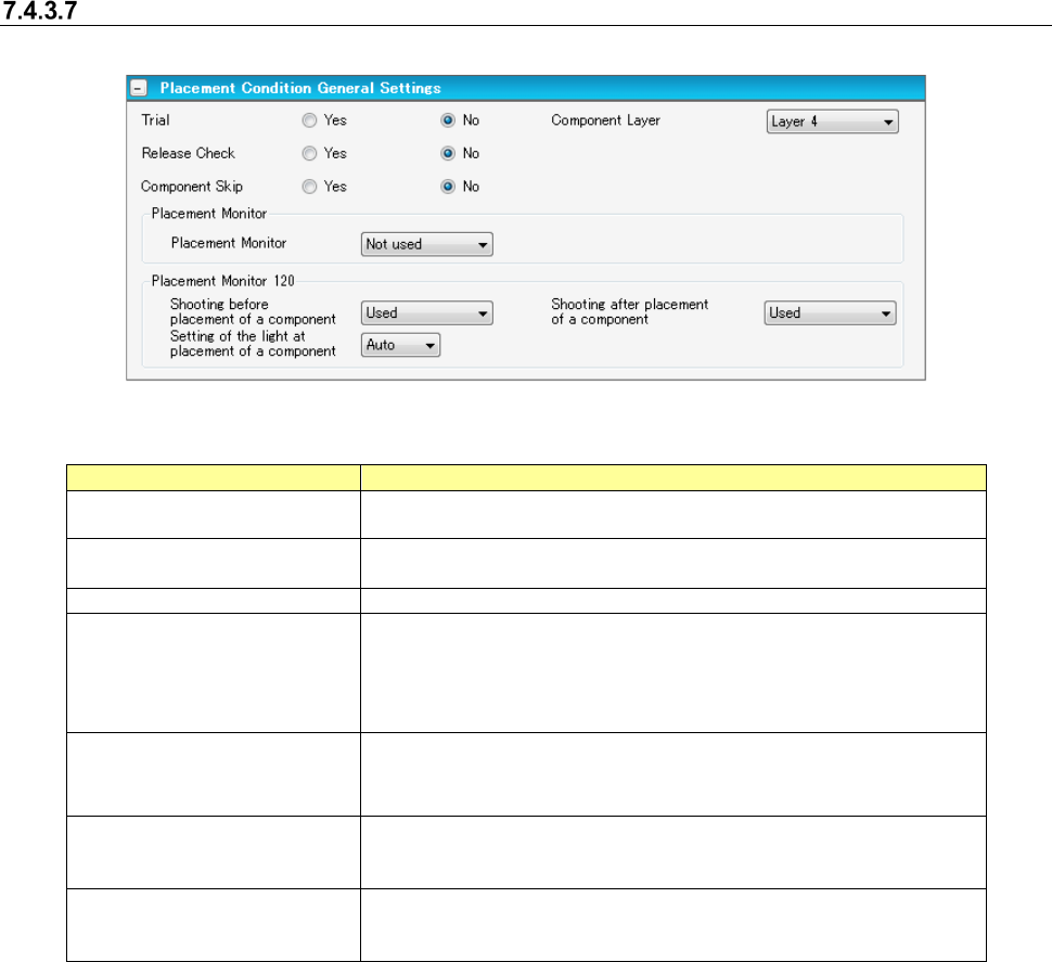 Table 7.4-30 Placement condition (3010-20 Series) screen items