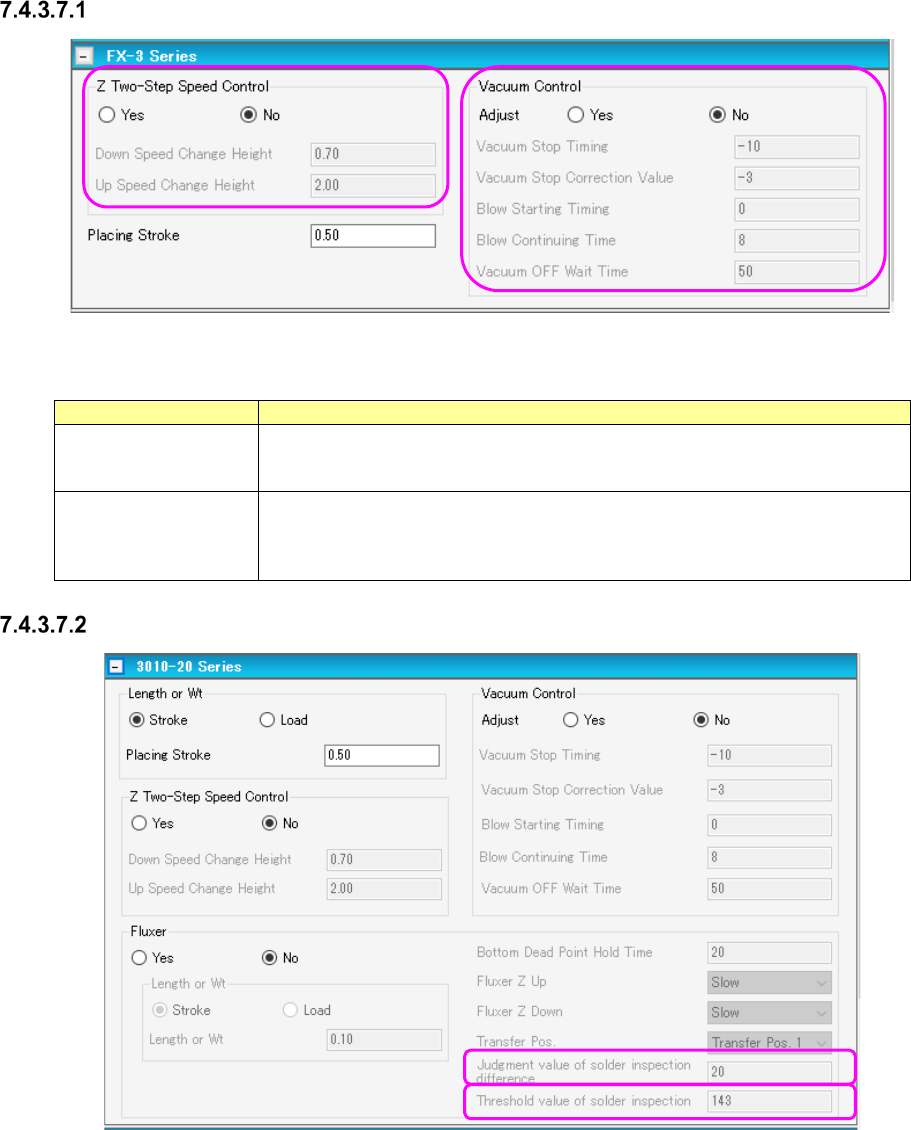 Table 7.4-31 Placement condition (3010-20 Series Fluxer) screen items