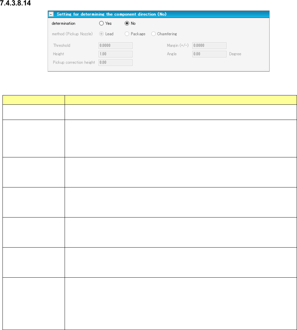 JaNets In structio n Manual 7. Program Editor 7- 62 Setting for determining the component d irection Figure 7.4 - 89 “ Setting for determi ning the component direc tion ” screen T able 7.4 - 54 Items displayed on the “ S…